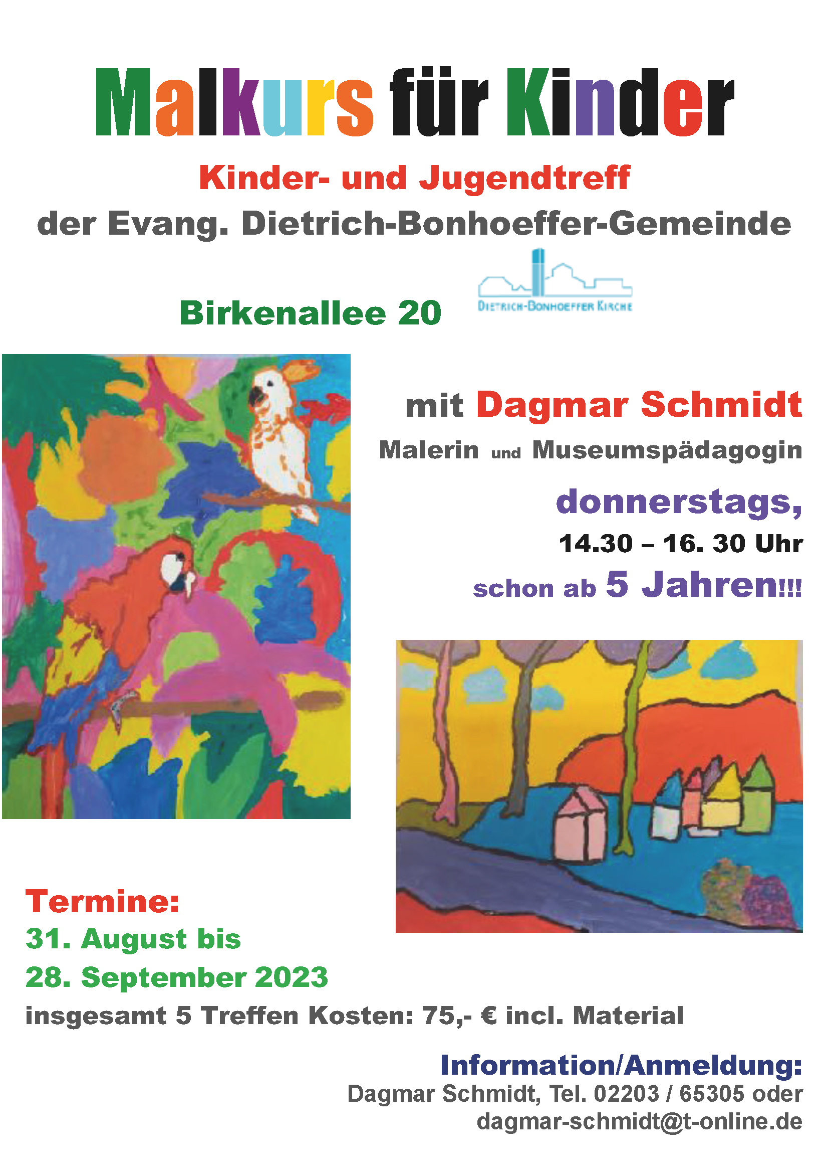 mit Dagmar Schmidt, Malerin und Museumspädagogin, donnerstags, 14.30 – 16. 30 Uhr